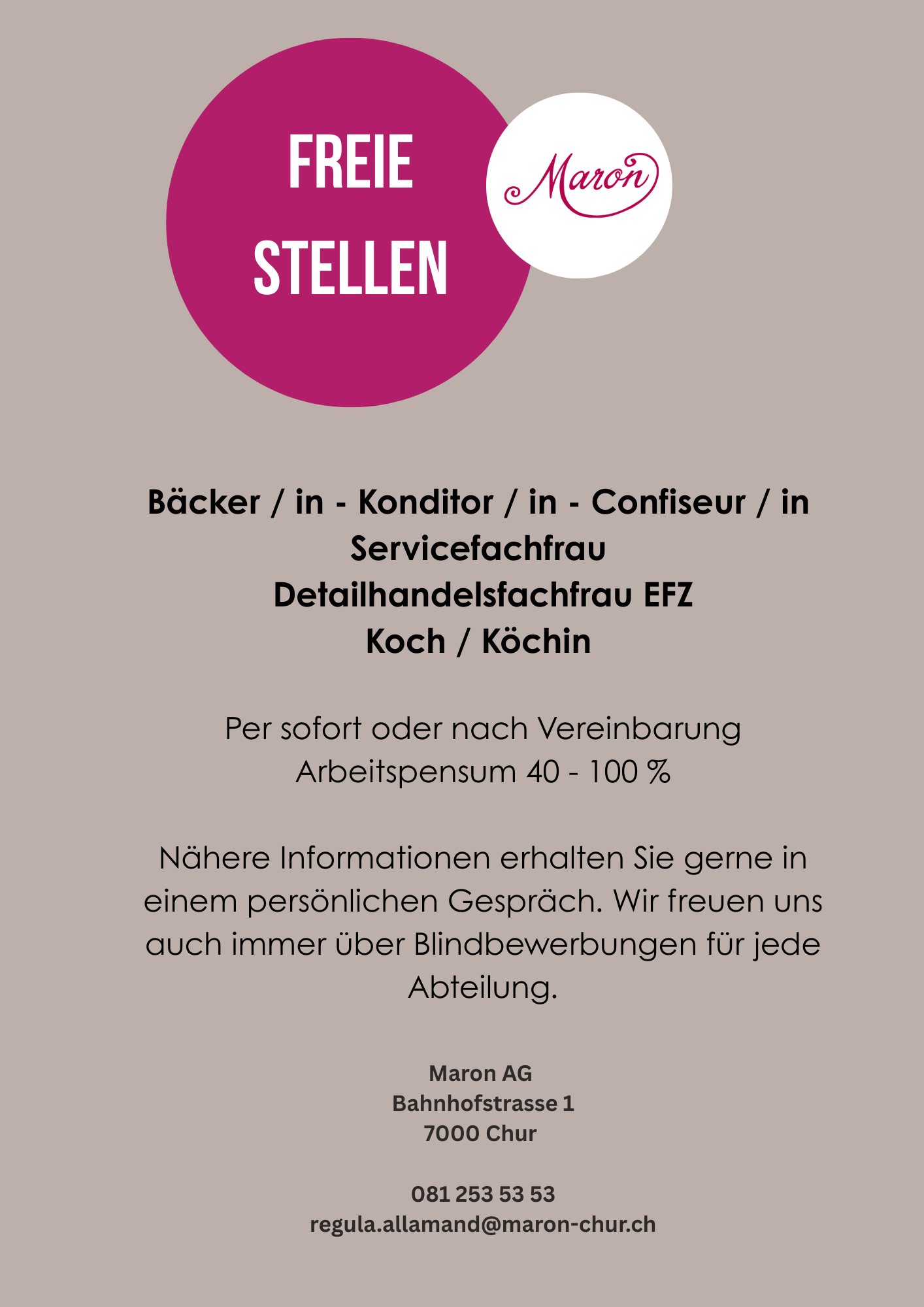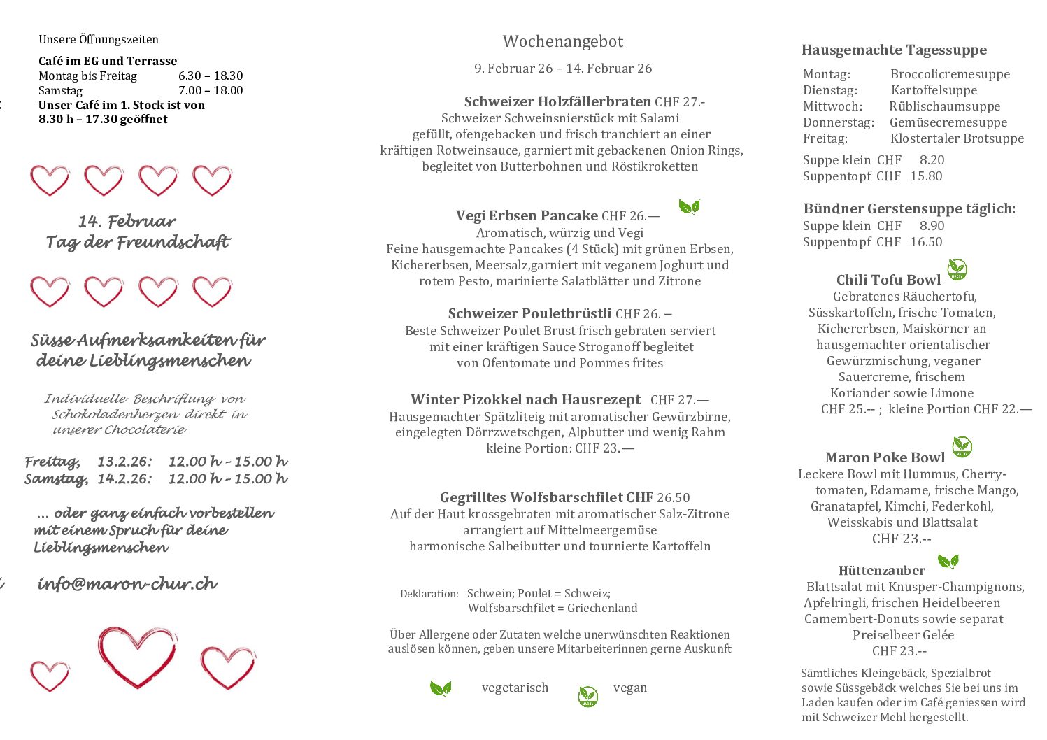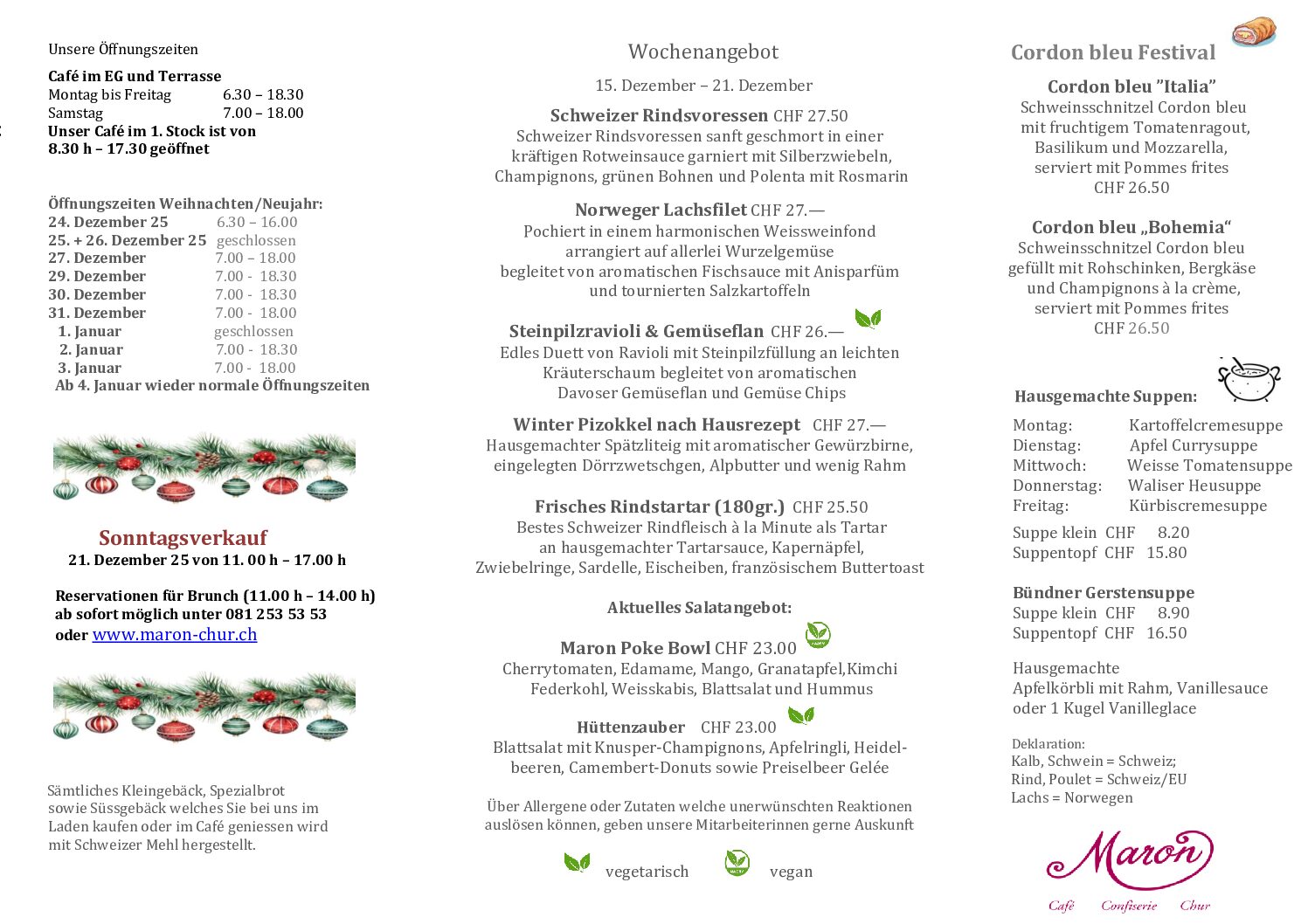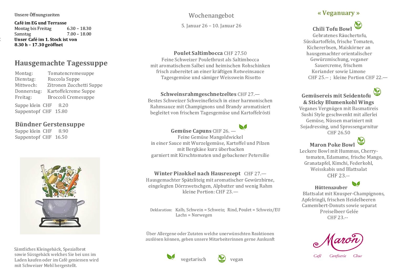 Herzlich Willkommen im MARONMaron am MittagMittagsmenü Speisekarte Zur Tischreservation Online-ShopZum Onlineshop Zum Geschenkflyer Zum Tortenflyer Zum Apéroflyer AktuellFreie Stellen